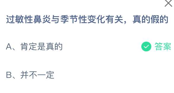 以上就是过敏性鼻炎与季节性变化有关,真的假的,支付宝蚂蚁庄园2025年10月22答案最新,更多精彩内容,请点击关注pk游戏网更新!