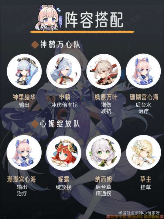 ① 神鹤万心队: 神里绫华+申鹤+万叶+心海