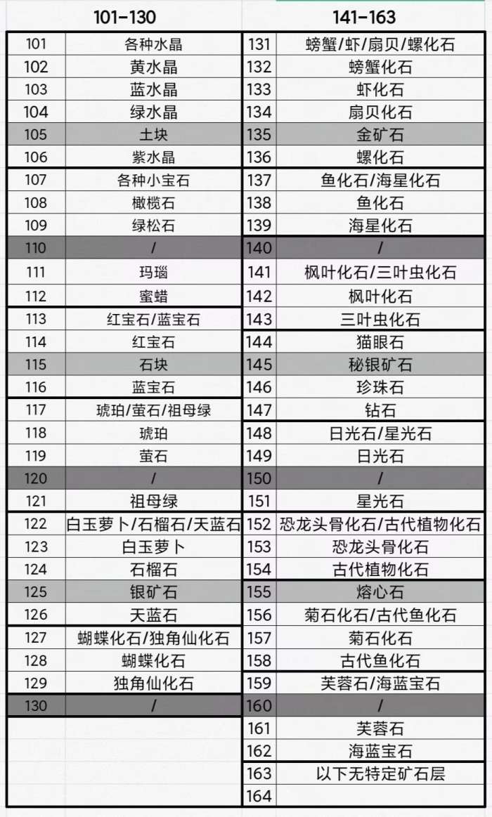 100162层:非尾数0的楼层出产特定矿产,可针对性挖掘。