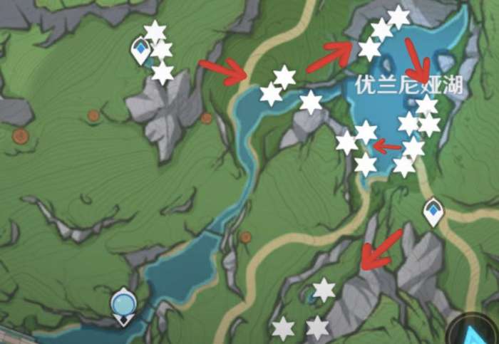 【点位路线(数量)】:优兰尼娅湖附近(20株)