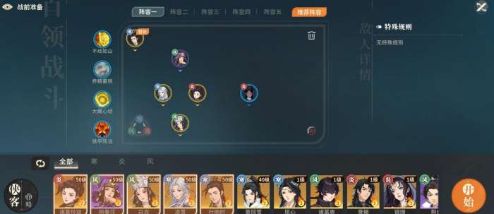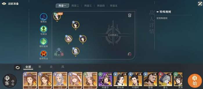 四寒队是由张月、屈心、凌雪、曲玉组合而成,再搭配上替补白衣就能令这套阵容完全成型。它有着很不错的持续作战能力,爆发伤害也特别的高,而且四名角色也都是强度很不错的绝品,所以即便碰上纯风队,也能顶着被克制与对方作战。在站位上,张月放在最前方承伤,屈心和凌雪位于张月的两侧,曲玉则是在最后方。唯一要注意的是,这套阵容对练度的要求比较高,四名绝品都需要投入资源来将练度拉满。