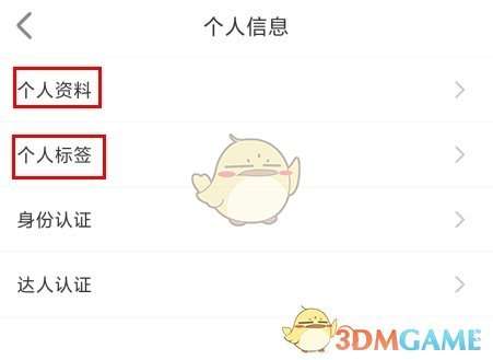 2、在个人信息页面中点击个人资料、个人标签按钮;