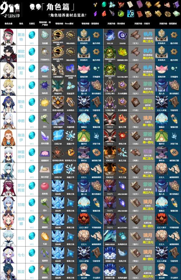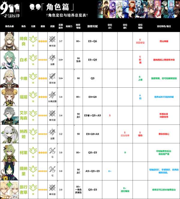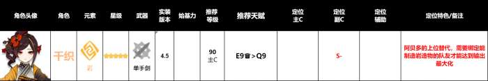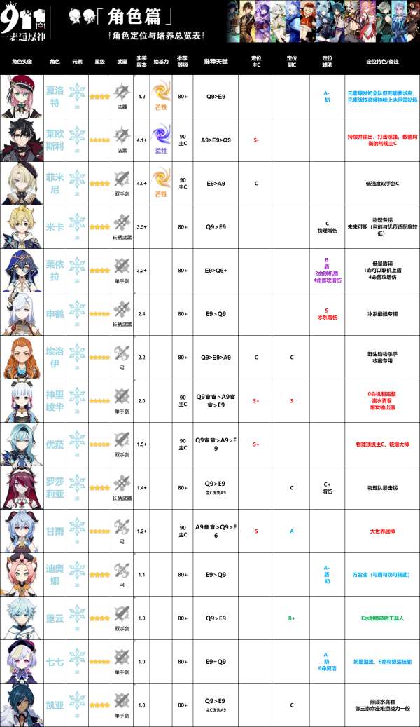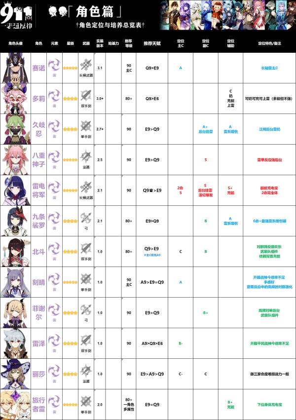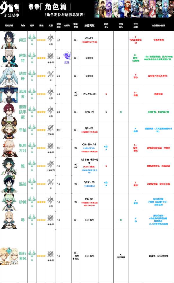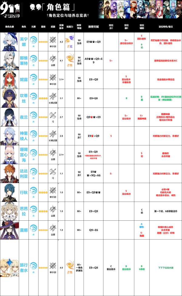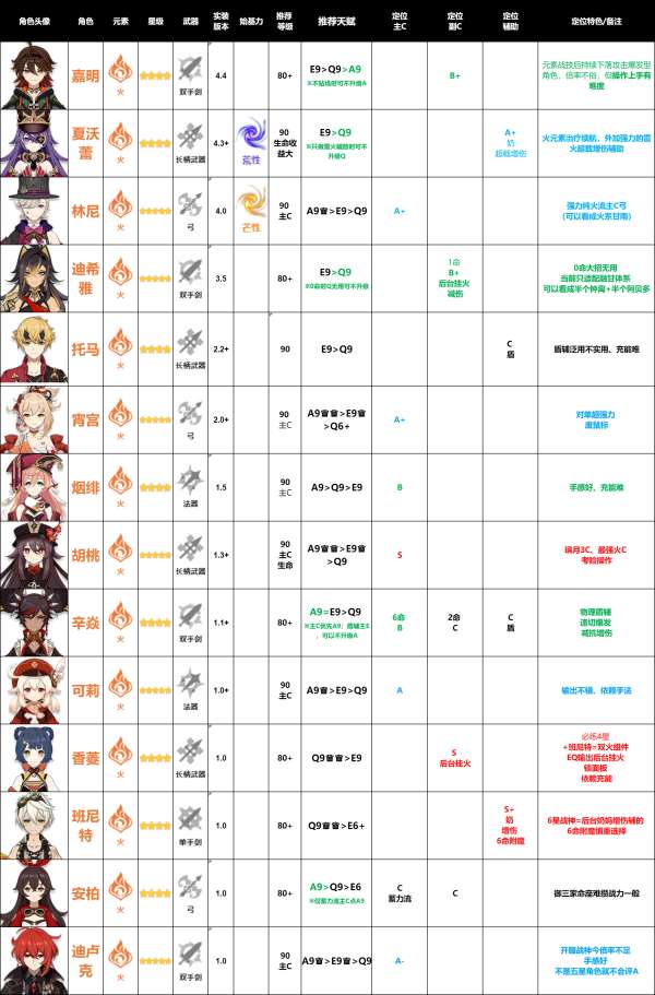 ※说明:评价基础环境为0命;评级上方的命座是实现该定位要求的必要命座;评级不仅看强度、还看实用性、易用性、性价比等;在相同定位的角色间进行等级比较才有意义!角色定位评级具有很大的主观性,仅供参考!