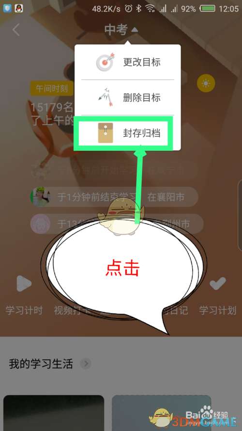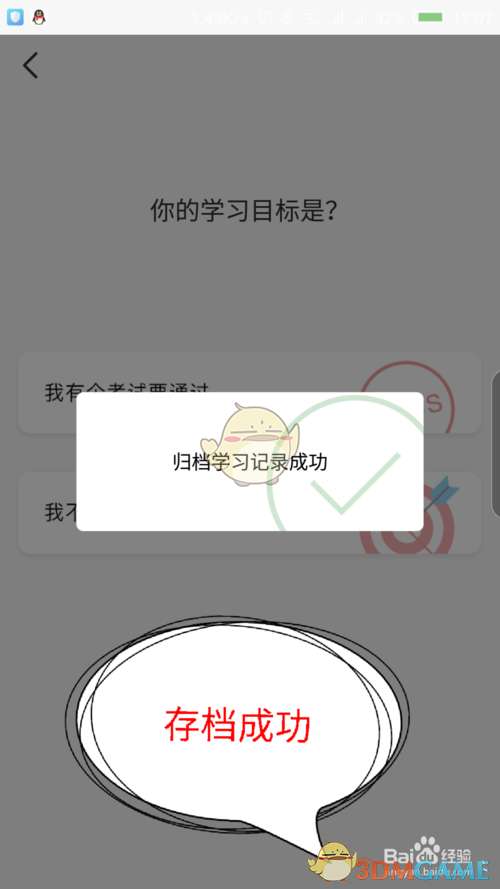 5、点击确定后,屏幕上面会有提示,归档学习记录成功,然后学习设置新的学习目标。如图所示
