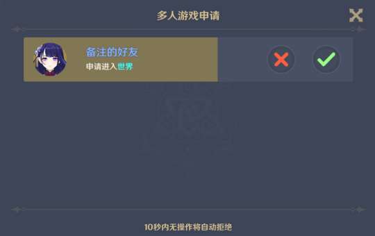在收到进入世界申请时,会显示是否为好友。避免了无法判断是否为好友而拒绝了的尴尬。