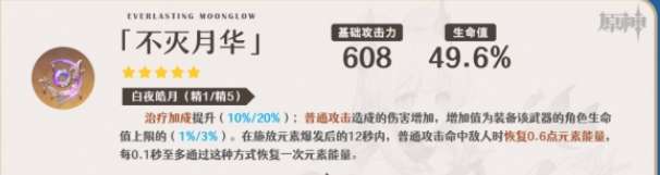 这个武器可以锻造获得,在不抽取不灭月华的情况下,这个武器相对的性价比是比较高的,优化自身的循环还能进一步的为全队进行治疗。