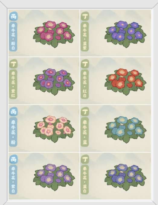 软件提交 专题合集 热门手游在桃源深处有人家游戏新版本花圃新增可培育花朵:牵牛花、凤仙花,每种花各自可以培育10种颜色。下面是桃源深处有人家牵牛花育种配方大全,牵牛花花色获取分享,详情可看下方分享!