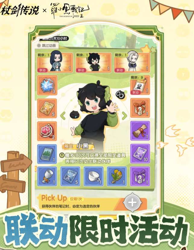 本次联动还特别推出原创剧情篇章——“小黑的冒险”,讲述小黑一行人意外穿越至坎斯汀大陆后展开的一系列奇遇故事。他们将如何适应这个陌生的世界?又会与原有角色产生怎样的互动?精彩内容等待玩家亲自探索揭晓。