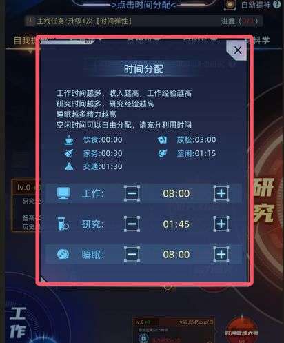 1. 第一个轮回基础操作,优先分配时间,睡眠调整到6小时,其余时间均匀分配到工作与研究