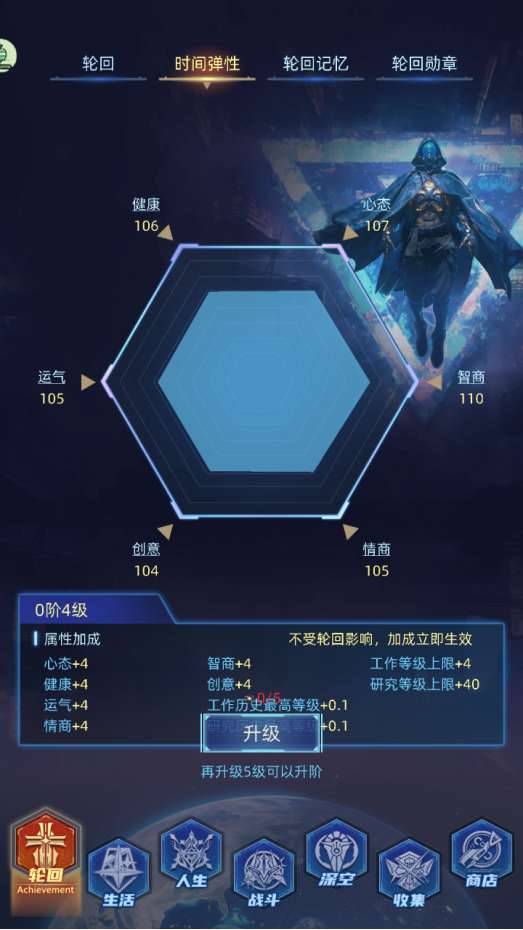 10.历史最高等级:可以大幅度提高你的经验获取速度,可以通过每次轮回不断提高历史最高等级来提高该项的升级速度。