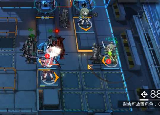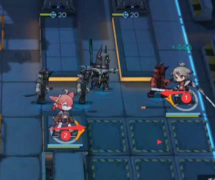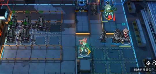 1.开局如下图所示顺序部署:刻刀(向左)→ 末药/嘉维尔(向右)