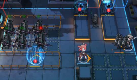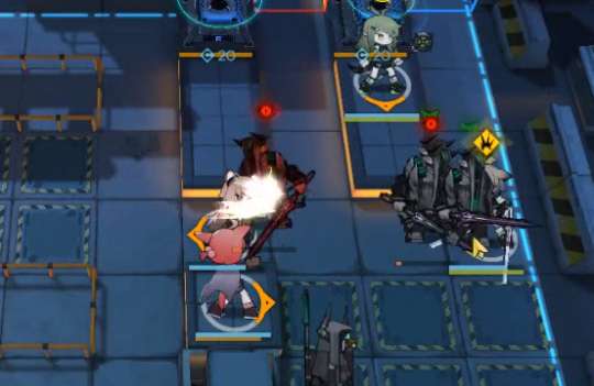 在与第一只敌人在同一排时,利用先辈刻刀将其打残,然后再使用刻刀开技能把它秒掉。接着,在两个奶的加成下,可以轻松地击败两个格子上的萨卡兹,但要注意不要打到哨兵。