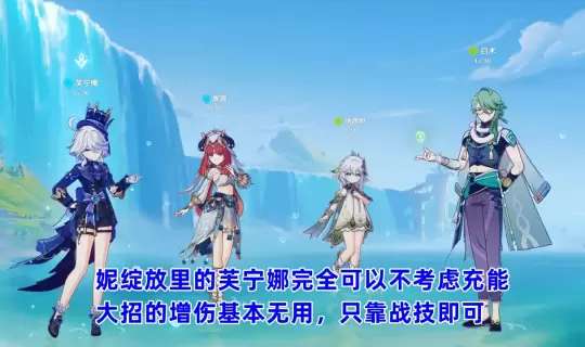 在雷神队、怪物产球多或四命环境中,充能可降至130%左右。在妮绽放中带芙宁娜时,可放弃大招,仅需靠战技小动物来挂水和造伤害。综合来看,芙宁娜需要充能,但充能难度不高,选择圣遗物和武器时无需过度焦虑。