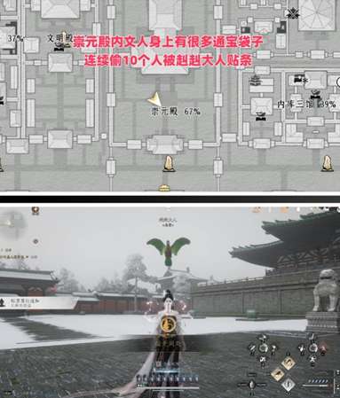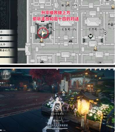 软件提交 专题合集 热门手游在《燕云十六声》开封皇宫中,有三个隐藏成就可获取:部头不信感觉:在升平楼界碑上方偷听孟改与周十四的对话。天机不可泄露:在后苑池塘找到鹂儿船只,并与船夫李德全对话。面无阙处:在崇元殿内连续偷取10位文人身上的通宝袋子,直到被起越大人贴条。