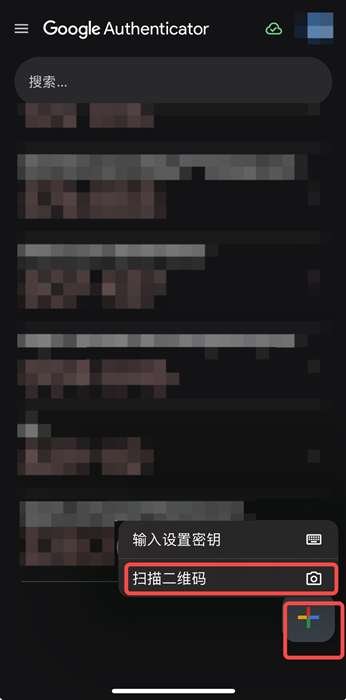 1. 打开谷歌验证器 App,点击“+”图标,然后选择“扫描二维码”。