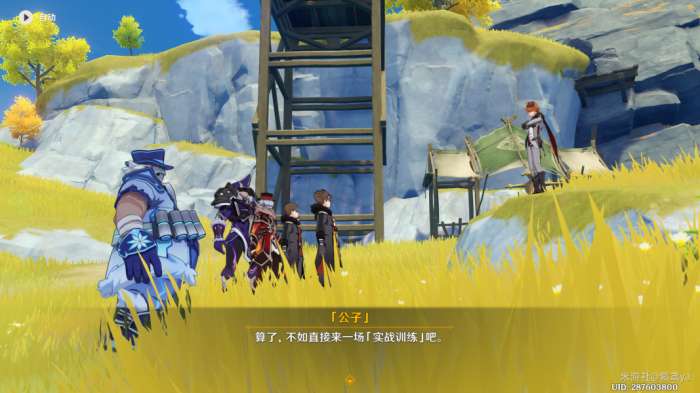 完成试炼待众人对话后前往灵矩关南边寻找托克,然后操作公子击败愚人众新兵完成对他们的实战训练
