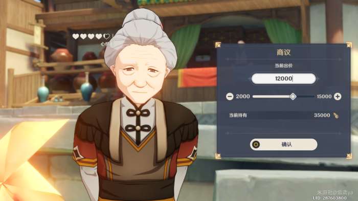 在北国银行内和众人对话后带托克前往玩具摊和阿山婆对话购买风筝,价格可商议为12000摩拉