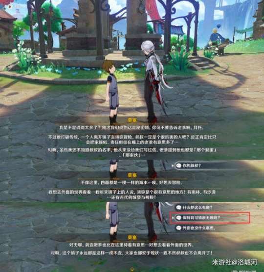 与NPC对话,得知她叫茱莉耶妲,记住这个名字。她愿意付3倍价钱让我们立即载她去往须弥拜达港交款。