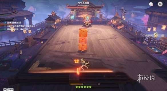 在这个关卡中,你需要同时注意躲避爆炸方块的弹幕,同时反击高抛球,才能成功过关。