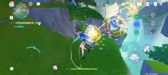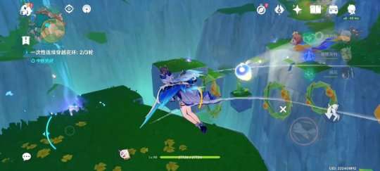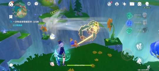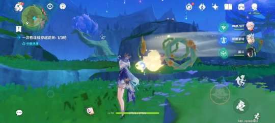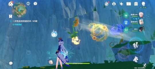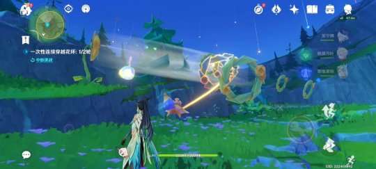 前往悬浮平台2,显示轨迹穿过所有花环,点按攻击召回