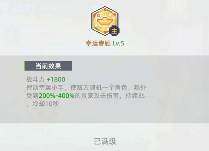 想体验 “财富暴击”?幸运眷顾满足你:敌方随机单体吃 200%-400% 灵宠攻击伤害(持续 3 秒),10 秒冷却暗藏惊喜! 敌方治疗、增益辅助残血时,赌一手 400% 倍率直接斩杀;世界 BOSS 单体阶段,配合团队集火补伤害,残血收割如同 “提款机吐钞”,精准又刺激。
