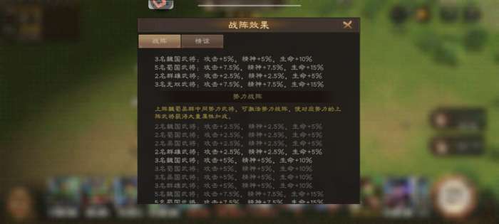 阵容加成3无双的7.5% 5蜀国7.5%的精神加成