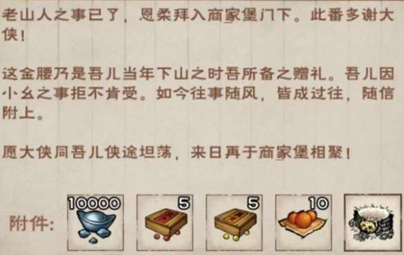 2、等待几分钟收到来信,查看领取10两银子、5大力丸、5真龙丹、10洗髓丹、商昊乾专属配饰「朔北金腰」。