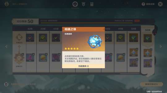 角色20级,50级,70级突破后会各给一个相遇之缘。这是开服后不久更新的奖励系统,也是原神唯二给的大方奖励。(另一个是每完成一个主线给一纠缠。)