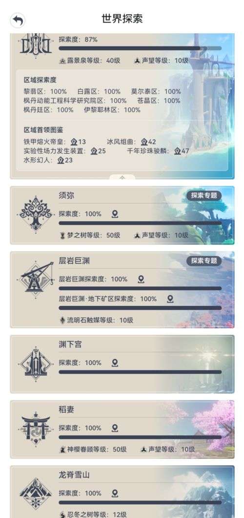 忍冬之树,神樱树,层岩,梦之树,神之瞳,甘露池,露景泉:64相遇之缘