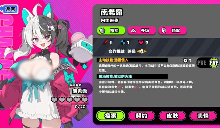 南希露之所以很抢手,是因为她的主动技和被动技都很厉害,虽然各模式下她的技能效果会有一定的差异,但在定位和作用上都差不太多。其中,若在合作模式里选择南希露,她能在发动主动技后无视距离,选择任意一只怪物进行战斗,并且只要怪物与她的距离超过了三格,那么即便怪物有反击机制,也无法对南希露生效。同时,只要南希露的回合开始时,她身边三格内若没有怪物,还能抽张战术手牌,自身更是能获得攻击加2和防御加2的被动,但会在发动战斗后丢弃张战术手牌(由主动技进入的战斗不会弃牌)。