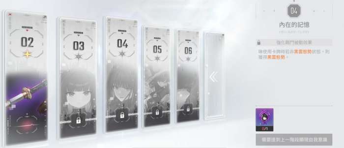 低命座当中琳的控牌顺序也会有所提升,如果是高命座的话,其实在这里选择琳的卡牌主要是选择一个被动黑云的效果,这样的话让她在能力上面能够达到的卡牌组合会更加稳定一些,后期如果是在复制卡上面优先级是最高的是残这张卡,然后是屁股斩以及灭,还有拔刀,其中残的话只会移动一张,那么总结整体的卡组效果当中,大家就要注意她的各个卡牌可以带来足够的神闪机制,所以琳在有这样加成效果上面的话,带来的能力其实是比较有优势可言的,后期在装备的时候,大家也要注意琳自身的循环,基本都是一些0费的卡牌。