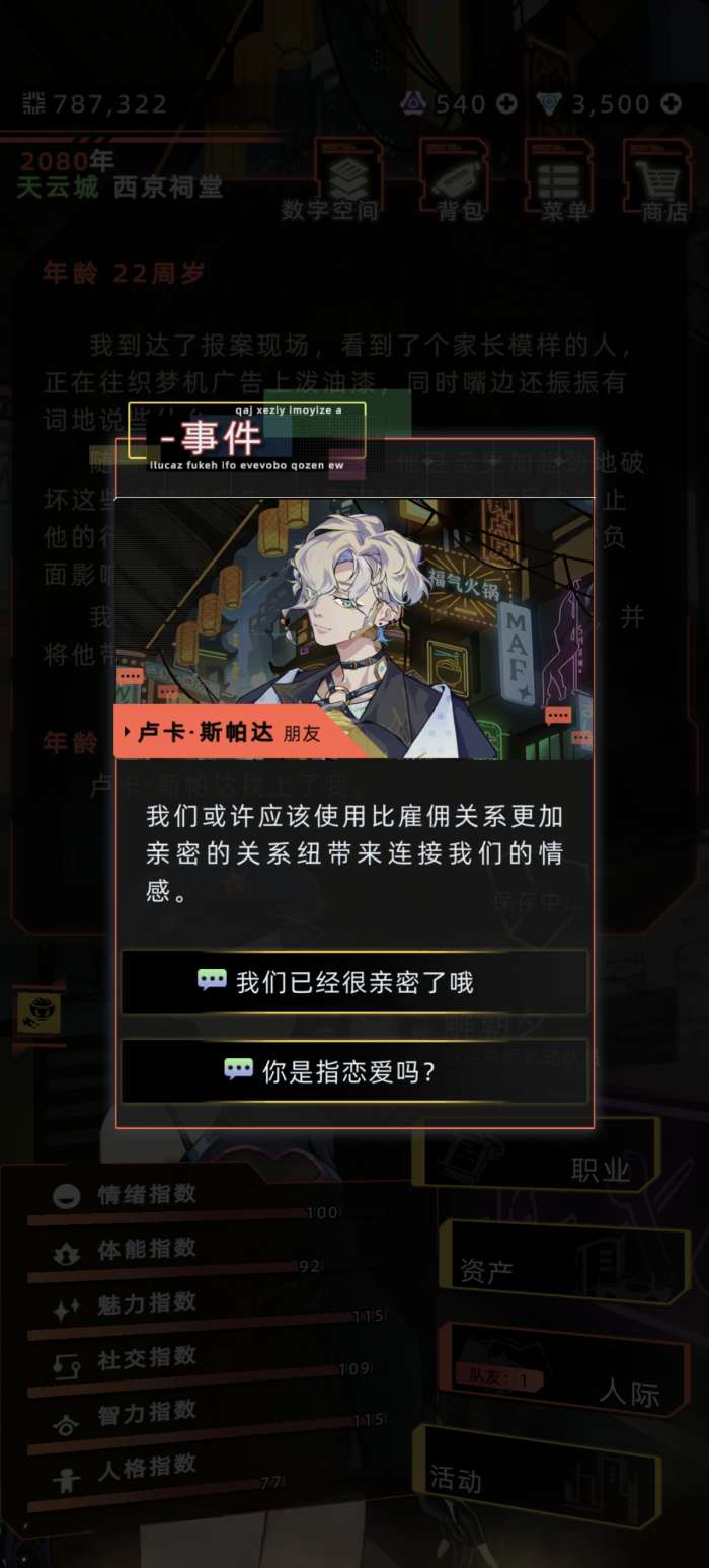(1)爱人线:听完M组织的话后选“他是我的雇主”+“选择卢卡”(可以选“我不会插手”最后问真正想法的时候选他+去西京救他就行了。但想走爱人线还是选雇主比较稳妥)