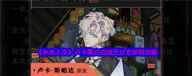 软件提交 专题合集 热门手游未来人生卢卡攻略剧情分线特别多,强烈建议都体验,顺序个人推荐先主控黑线再主控白线。下面给大家带来了《未来人生》卢卡黑白四线五分支详细攻略!