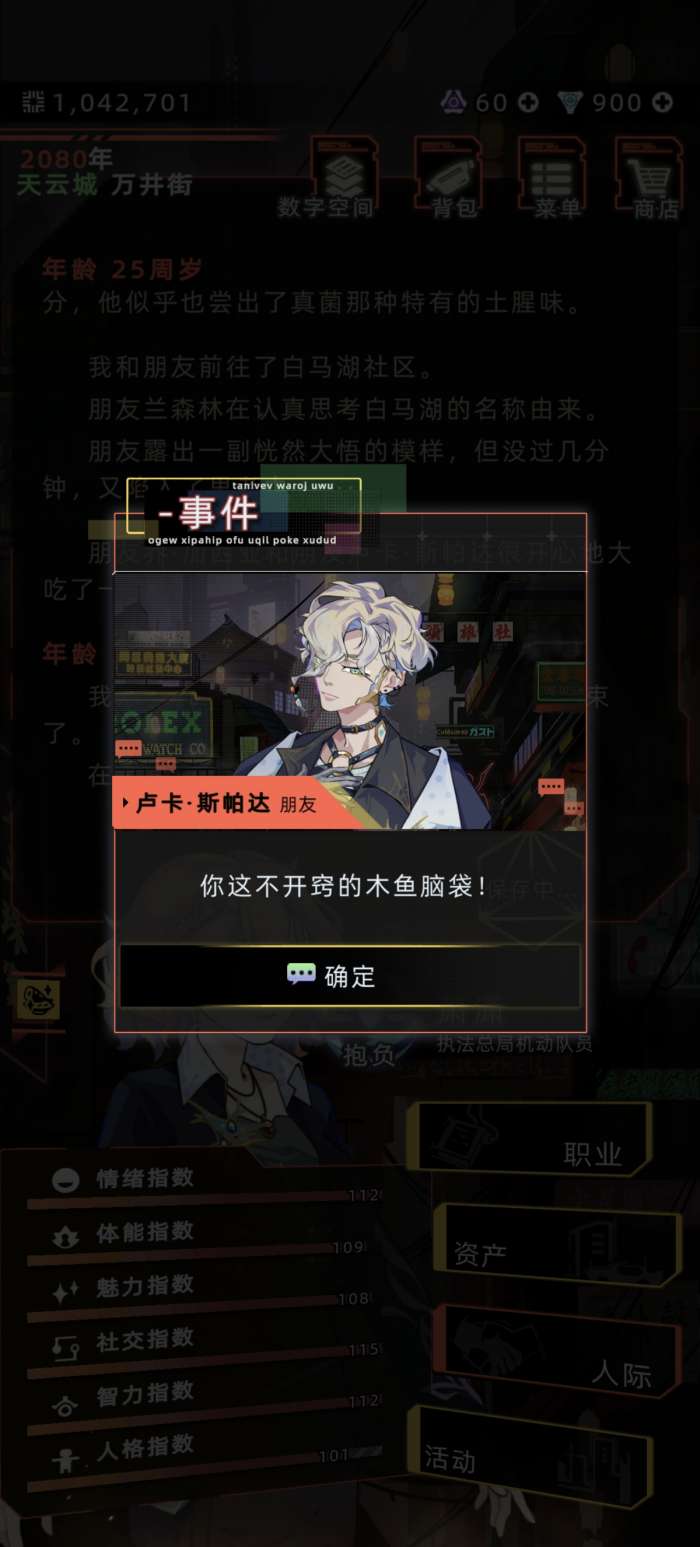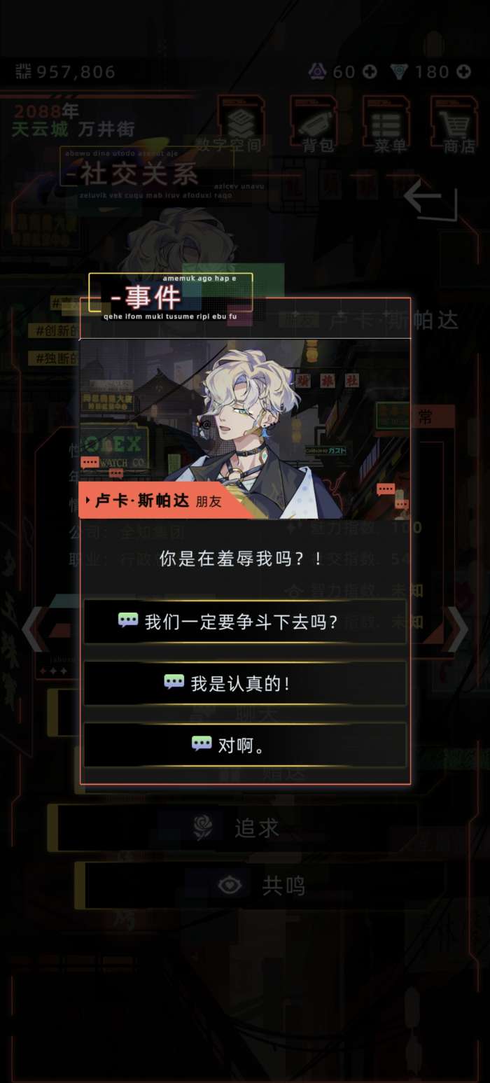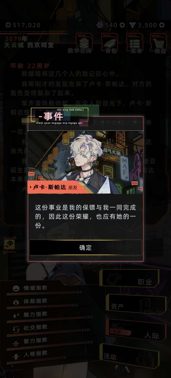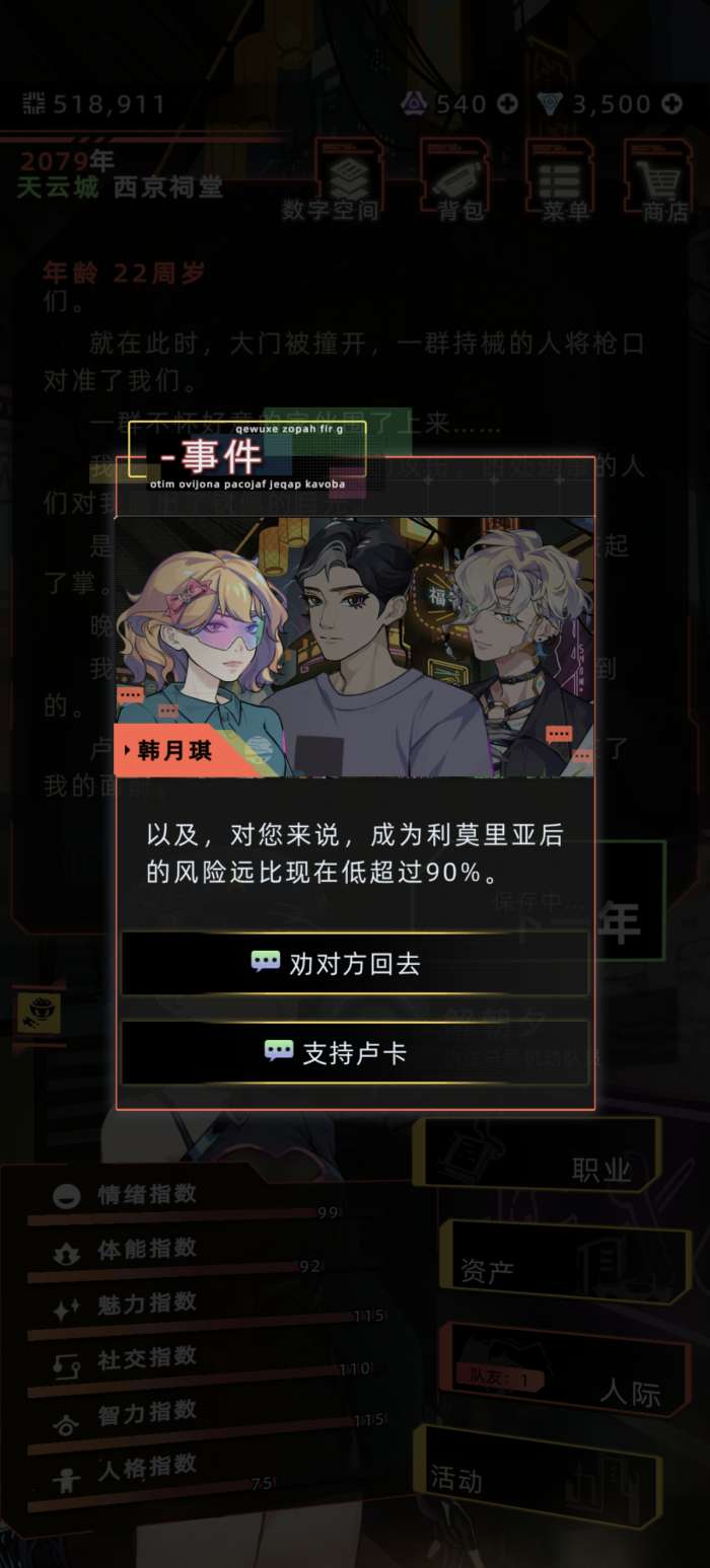 要求:高人格(直接刷满必触发,此线主控正义感强,难以接受卢卡的手段,进入摇摆),标志:遇到M组织的人,告知卢卡的作为。