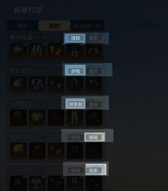 打开啾灵防具铸造站,官方已经很明确的标出了是什么套装