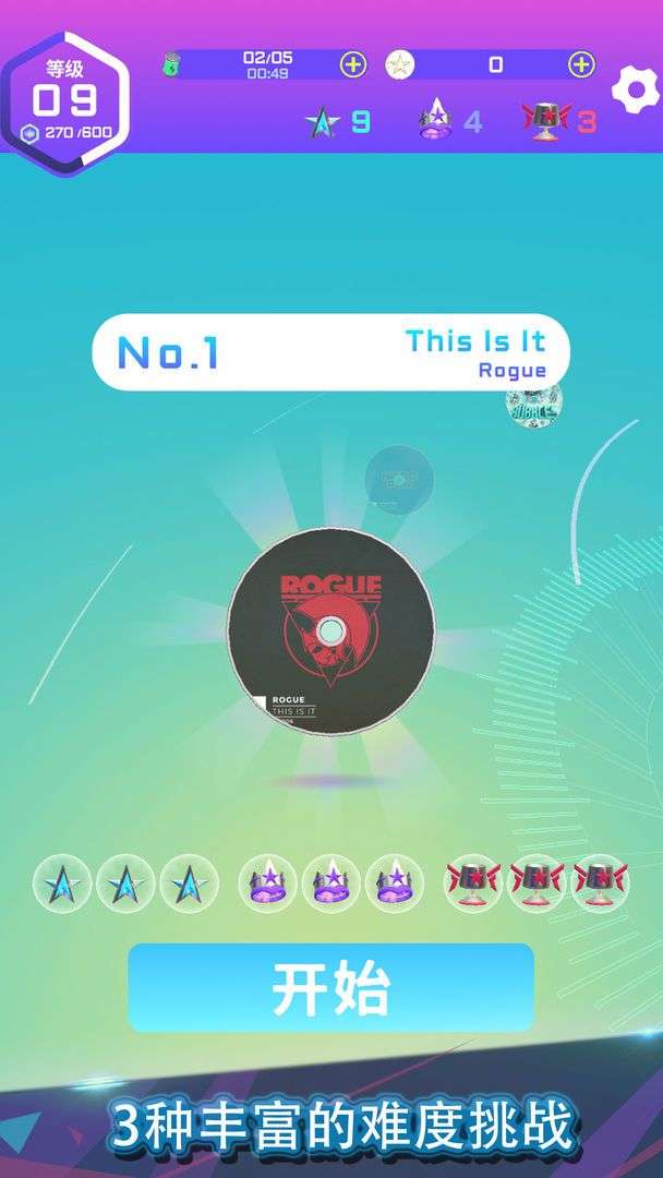 3. 每首歌精心设计了3种挑战难度, 让玩家轻松上手的同时还可以持续挑战自我.