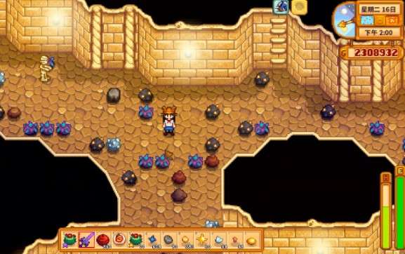 矿井采集:在矿井1~39层(尤其是30~39层)敲碎蓝色晶体矿石或石头,可用炸弹提高效率。
