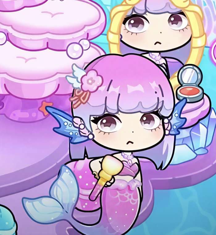 本区域的核心交互机制围绕“形态转换”展开:场景内所有可操作物件均具备动态响应能力。例如,玩家可自定义彩虹夜明珠的色相与光效;魔法池中的活性魔液能实时切换角色下肢形态——注入药剂后,人类双腿可转化为适配水下活动的鱼尾结构,反之亦然。该设定构成玩法闭环:欲潜入深海生态区,需启用魔法车厢内特制药水激活鱼尾形态,以实现与珊瑚礁、发光水母及游弋鱼群的自然互动;返回陆地建筑场景前,则需再次转化为人腿形态,保障室内行走与家具交互的物理合理性。形态切换过程伴随粒子特效与音效反馈,持续强化奇幻代入节奏。