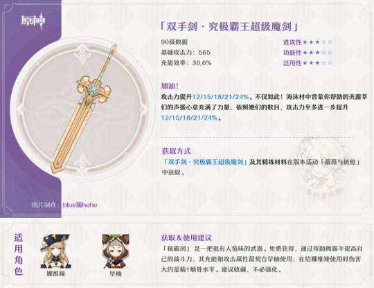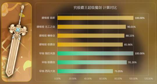 究极霸王超级魔剑是565白值,主词条为充能效率的双手剑。