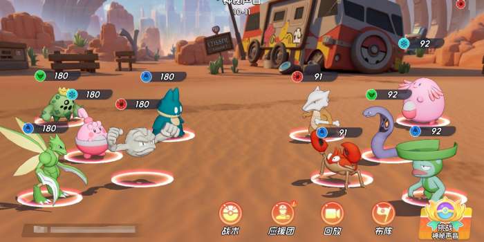 由此可以看出,飞天螳螂的特性是对后排进行突击,所以在配队上更适合与一些能与它一道进行突击的宝可梦进行搭配。在SSR宝可梦中,同样能突进后排的波波、皮卡丘都是很好的选择,它们能与飞天螳螂一道快速完成对敌人后排的斩杀。至于队伍里的其他位置,可用小卡比兽和小拳石组成双前排,再搭配小福蛋为全队提供治疗。