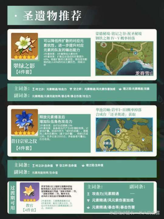 圣遗物: ①翠绿之影 ②宗室 ③教官(过渡期)