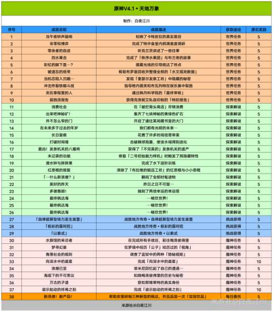 在4.1版本,共新增了58个成就,可获原石奖励为375。