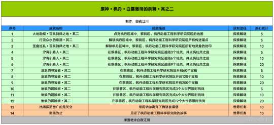 新增「枫丹•白露澈明的泉舞•其之二」,14个成就,可获145原石。