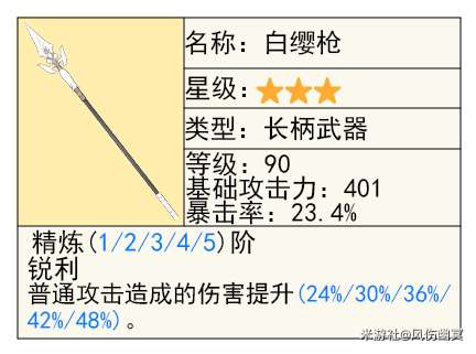 雪山长枪,可以看作是物伤流修女的四星专武了,走永冻最好,高精够特效的伤害是很高的,而且长枪不会碎冰,基本可以说吃满伤害。