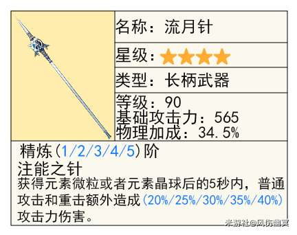 物伤流:站场普攻打物理伤害,【绝不可】带重云或者6命班尼特等会附魔的角色。