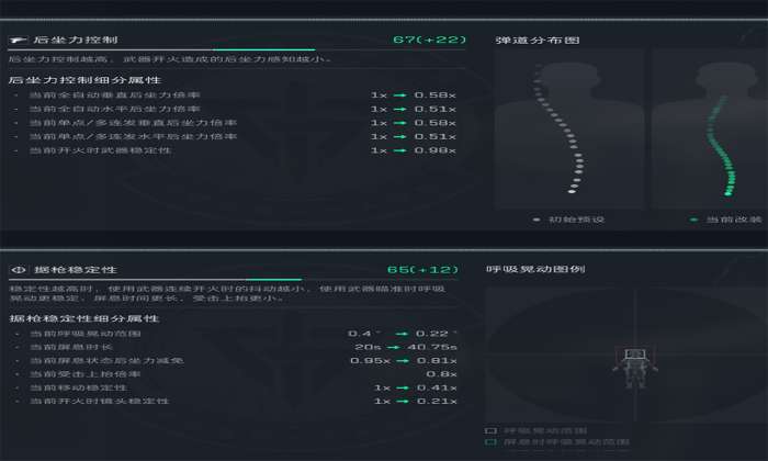 从图中可以看出,改装后后坐力有所降低且视野良好,弹夹也增加到45发,该枪械的射速也快,形成一定程度的火力压制!