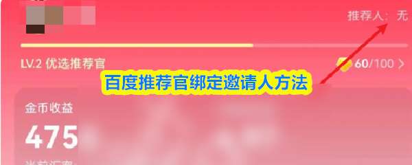 软件提交 专题合集 热门手游在百度推荐官活动中,您可点击页面右侧的“邀请人”按钮直接绑定推荐人,或通过好友分享的拉新链接按提示完成绑定。绑定后,通过完成任务、购物或邀请新用户即可赚取佣金,并可晋升为优选推荐官。