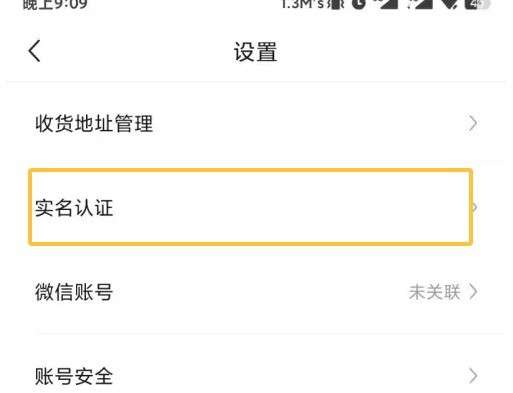 在设置界面中找到实名认证选项,点击后实名认证界面。