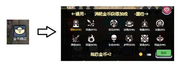 通过你的金币消耗,选择对你的属性进行升级,这也是前期必去搞的事情,金币商店的消耗会随着你提升的等级提升,属性也一样