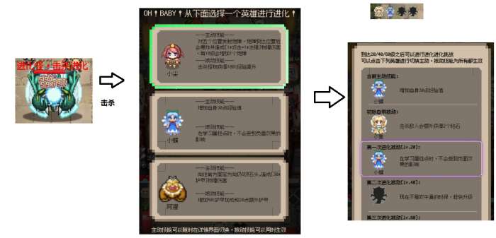 通过击杀进化怪,可以进行进化,选择一个英雄,直接获得他的被动技能